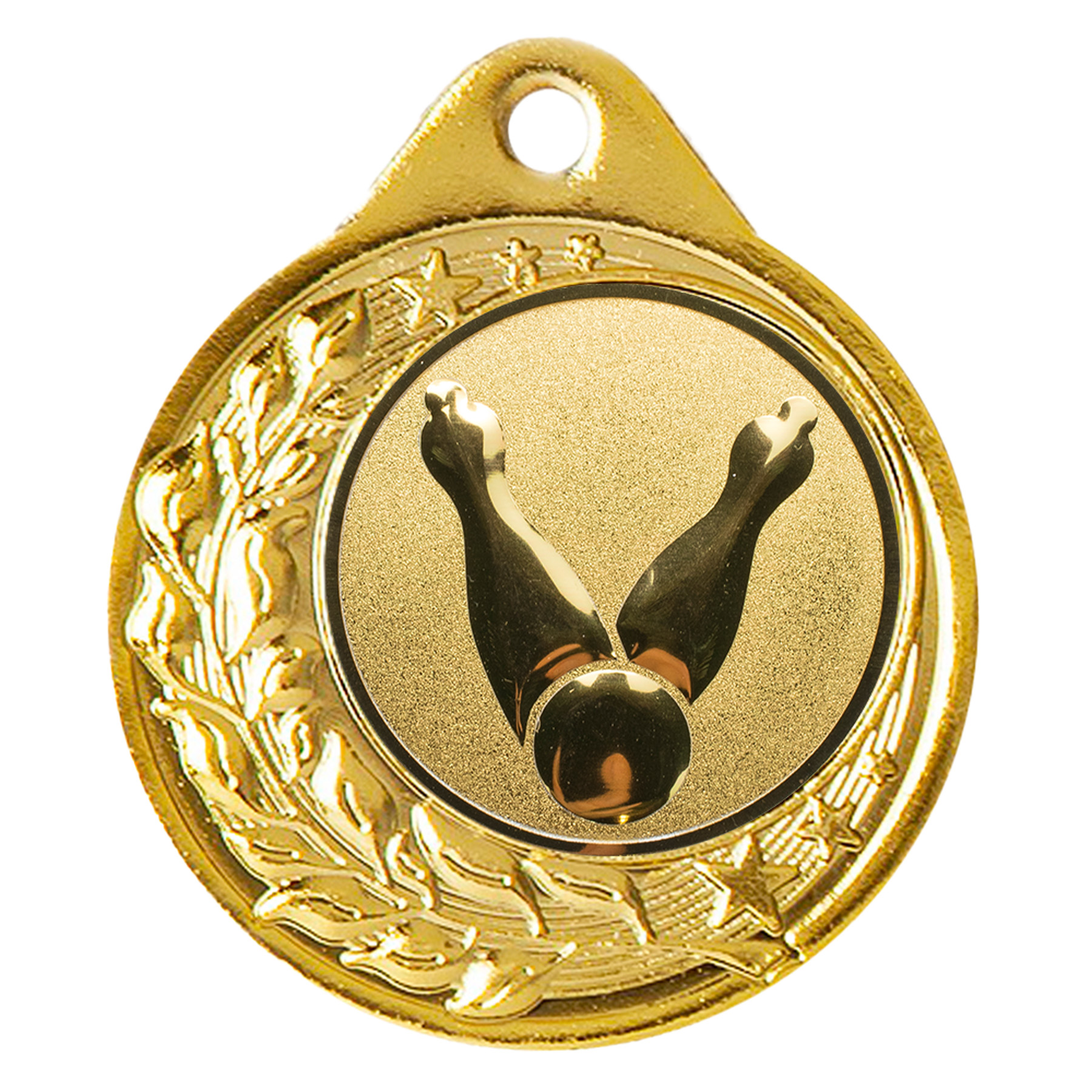 Das integrierte Emblem mit 25 mm Durchmesser zeigt ein Bowling-Motiv und ist in den Varianten Gold, Silber oder Bronze erhältlich – passend zur erreichten Platzierung oder Kategorie. Das Emblem ist bereits professionell montiert und unterstreicht den sportlichen Charakter der Auszeichnung auf ansprechende Weise.