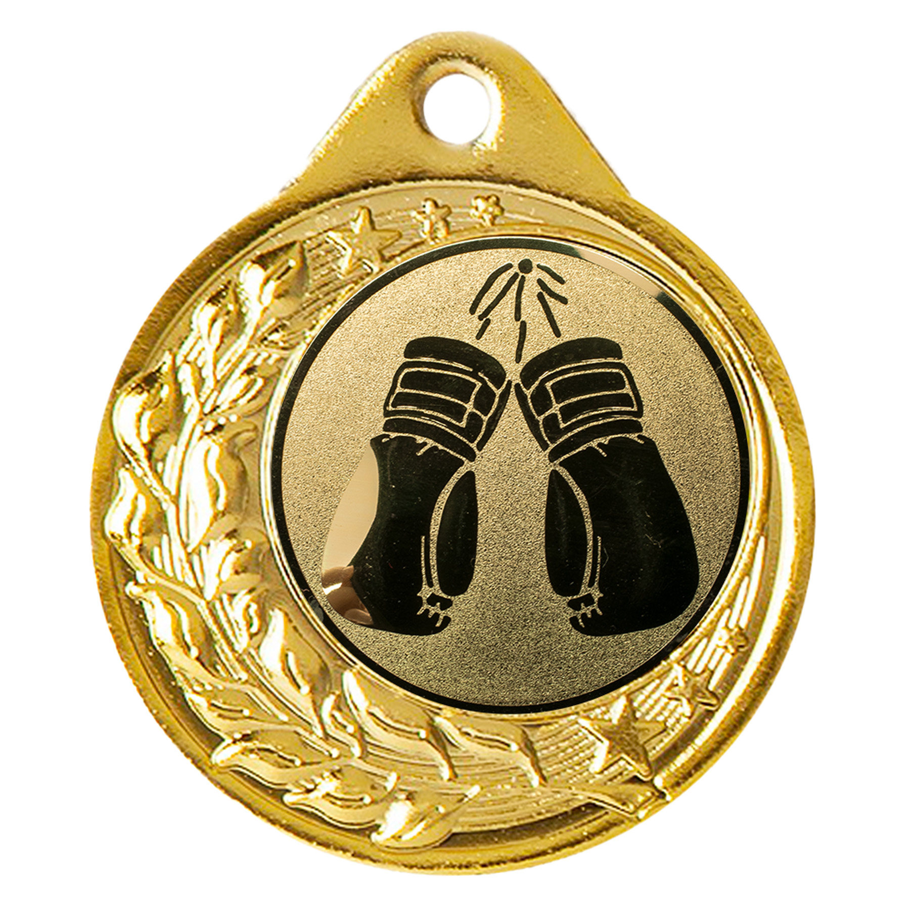 Im Zentrum der Medaille befindet sich ein 25 mm großes Emblem, das ein Box-Motiv zeigt. Du kannst aus den Varianten Gold, Silber oder Bronze wählen – perfekt abgestimmt auf den erreichten Rang oder die jeweilige Auszeichnungskategorie. Das Emblem ist bereits vormontiert und verleiht der Medaille ein hochwertiges Erscheinungsbild.