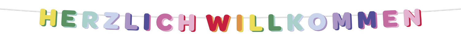 Gäste herzlich begrüßen – mit der Buchstabengirlande „HERZLICH WILLKOMMEN“ wird jede Feier freundlich und einladend dekoriert. Die farbenfrohe Girlande eignet sich ideal für Anlässe wie Einweihungspartys, Willkommensfeiern oder als dekorativer Blickfang im Eingangsbereich.