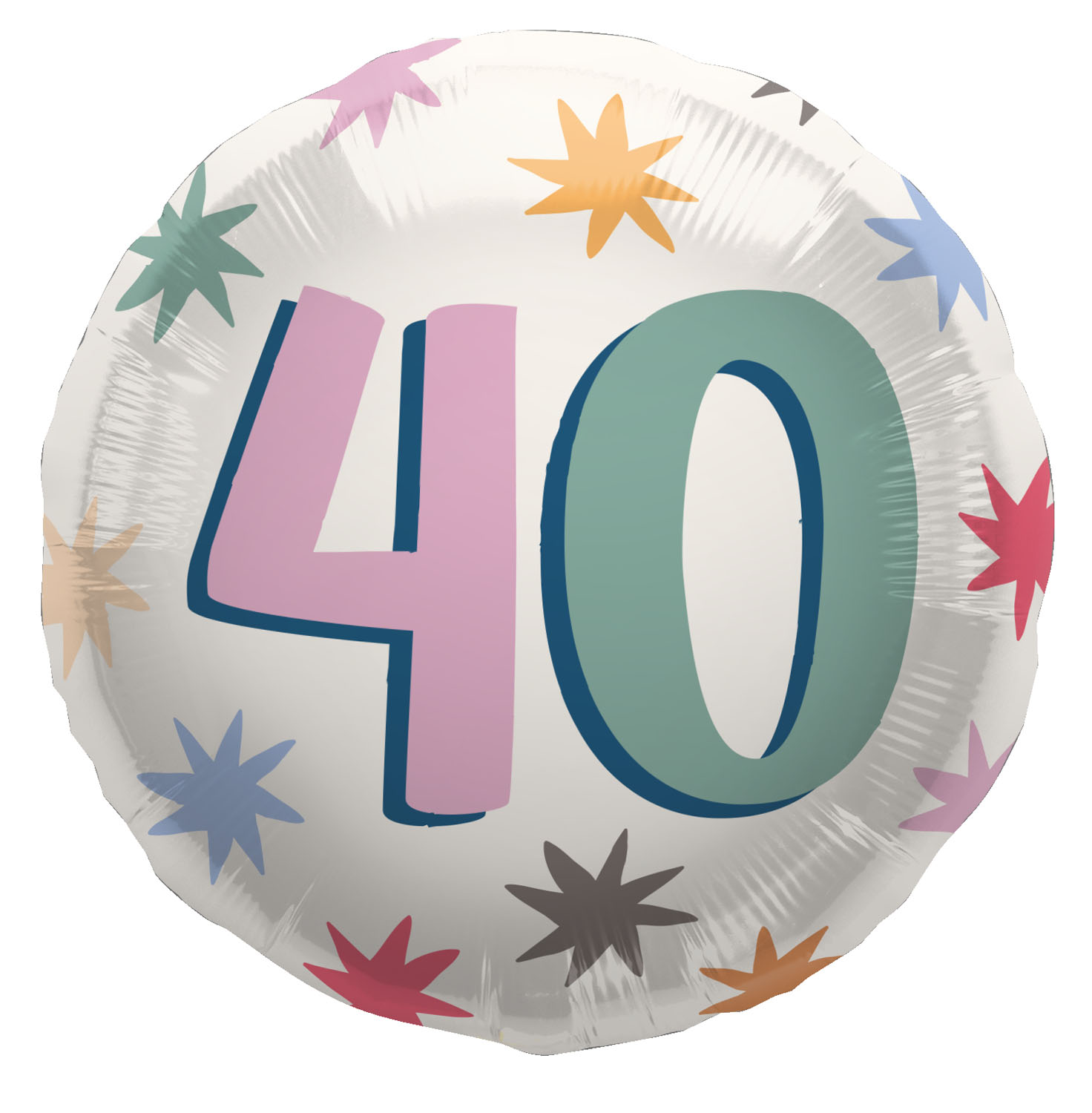 Der Folienballon hat einen Durchmesser von 45 cm (18 inch) und ist beidseitig bedruckt mit dem Starburst-Muster sowie der Zahl „40“. Geeignet für Helium oder Luft.