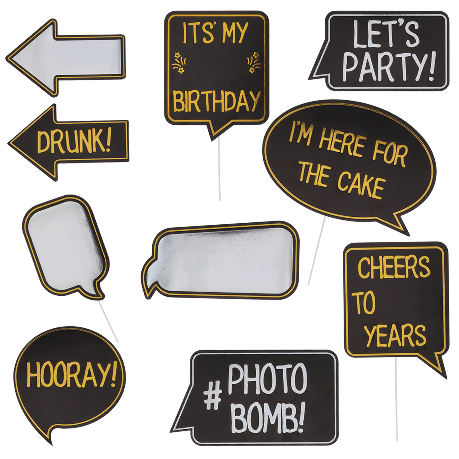 Bilder bitte! Mit dem Fotobox Zubehör im Shining-Glam-Design wird jede Geburtstagsfeier zum Foto-Highlight. Die Requisiten sorgen für Spaß vor der Kamera und machen jedes Foto zu einer besonderen Erinnerung.