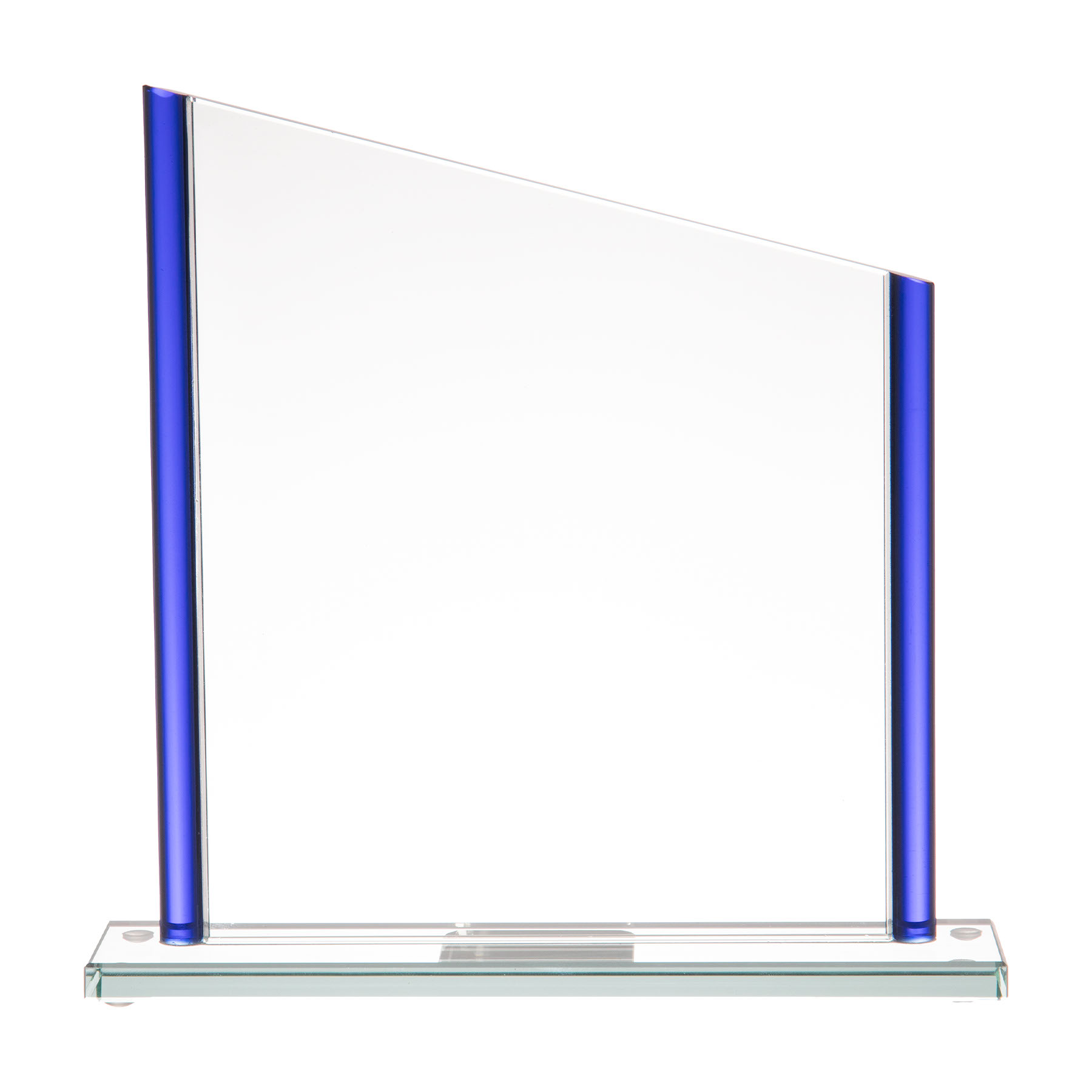Die Glastrophäe „Chalzedon“ besticht durch ihr klares, modernes Design mit markanten blauen Farbakzenten an den Seiten. Sie verbindet hochwertige Materialien mit individueller Gestaltung und ist die ideale Wahl für Auszeichnungen bei sportlichen Events, Firmenfeiern, Jubiläen oder besonderen Ehrungen. Die blauen Seitenelemente verleihen der Trophäe eine elegante und edle Ausstrahlung, die jeden Anlass würdevoll unterstreicht.