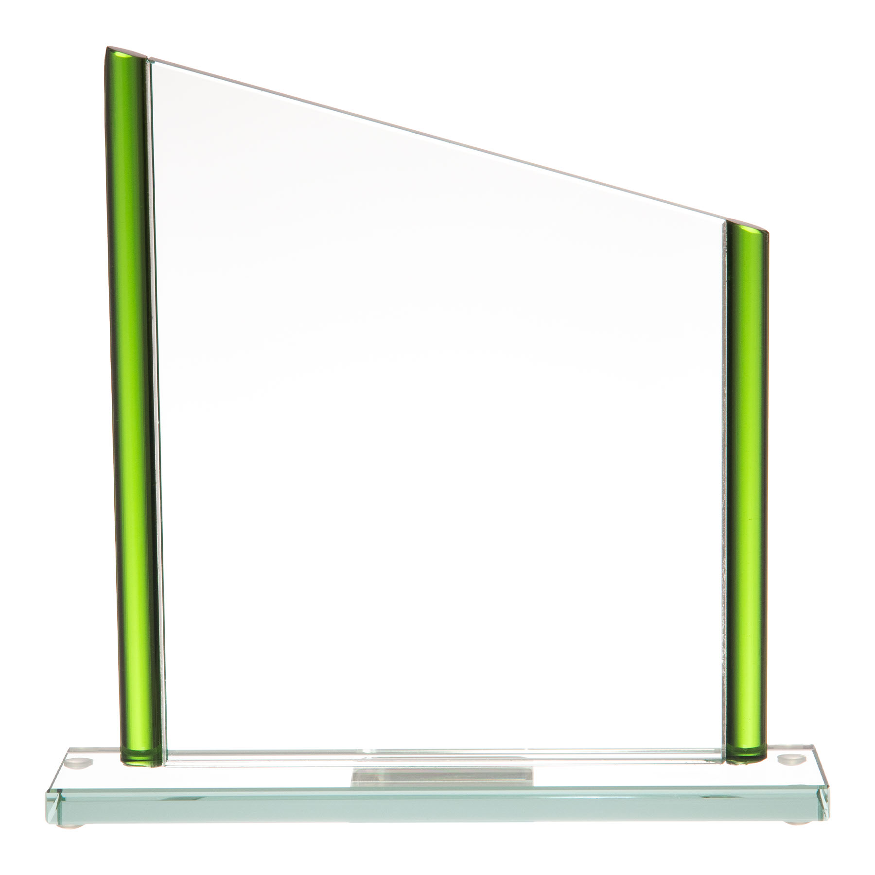 Die Glastrophäe „Chromdiopsid“ besticht durch ihr modernes, klares Design mit markanten grünen Farbakzenten an den Seiten. Sie verbindet hochwertige Materialien mit individueller Gestaltung und ist die perfekte Wahl für Auszeichnungen bei sportlichen Events, Firmenfeiern, Jubiläen oder besonderen Ehrungen. Die grünen Seitenelemente verleihen der Trophäe eine frische und elegante Ausstrahlung, die jeden Anlass stilvoll unterstreicht.