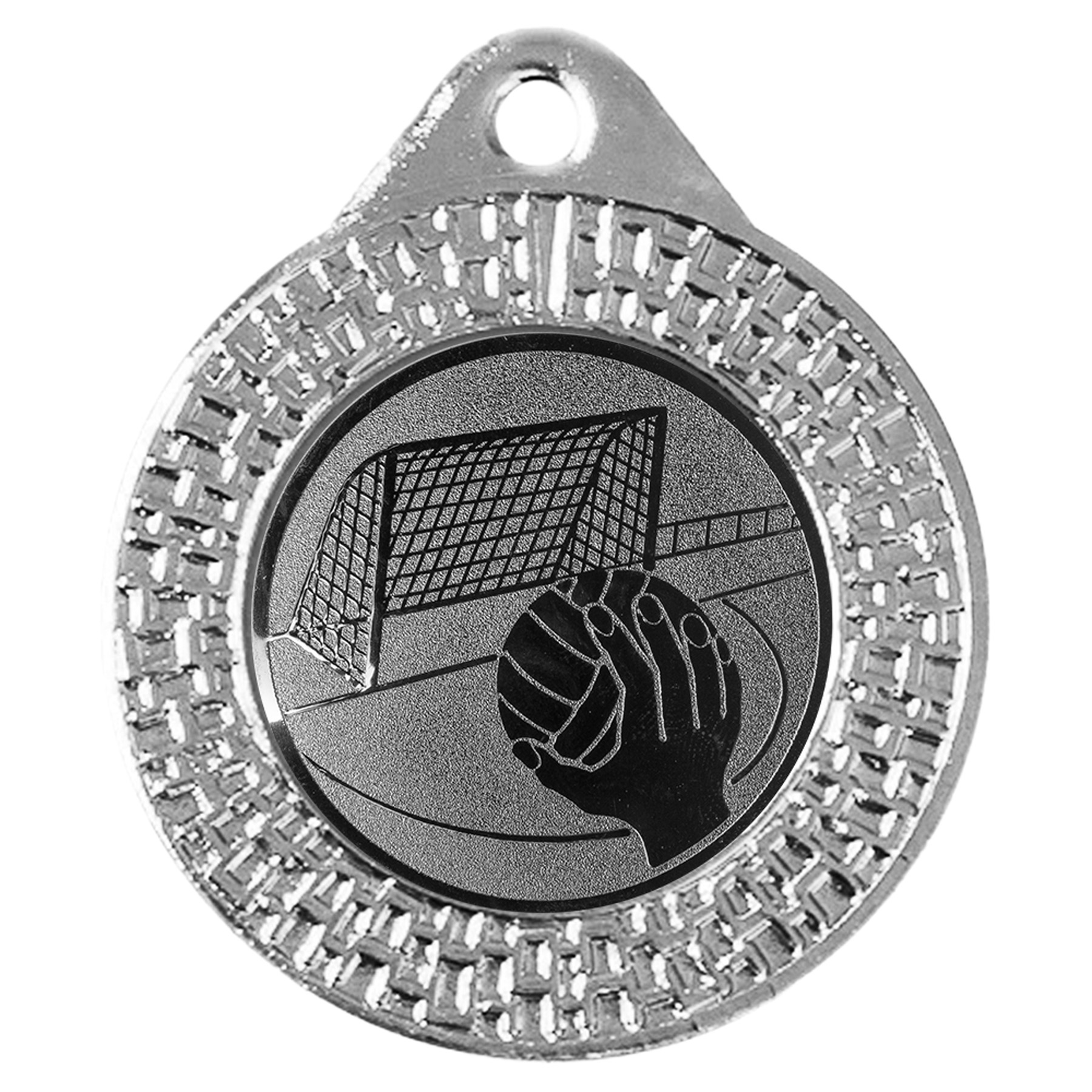Im Mittelpunkt der Medaille befindet sich ein 25 mm großes Emblem mit Handball-Motiv. Es steht in Gold, Silber oder Bronze zur Auswahl – passend zur jeweiligen Platzierung. Das Emblem ist bereits fest in die Medaille montiert und somit direkt einsatzbereit für Siegerehrungen.