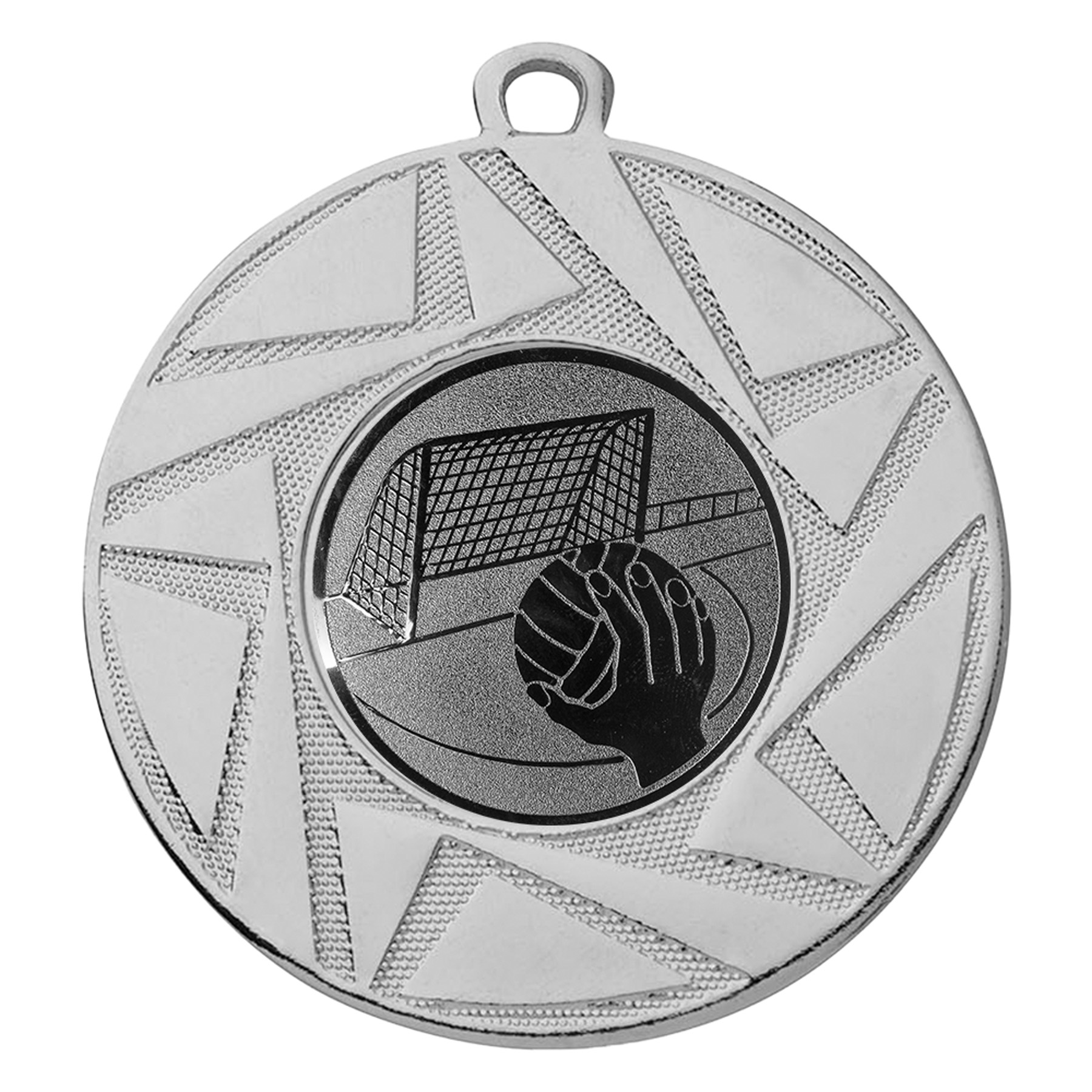 Im Mittelpunkt der Medaille befindet sich ein 25 mm großes Emblem mit Handball-Motiv. Es steht in Gold, Silber oder Bronze zur Auswahl – passend zur jeweiligen Platzierung. Das Emblem ist bereits fest in die Medaille montiert und somit direkt einsatzbereit für Siegerehrungen.