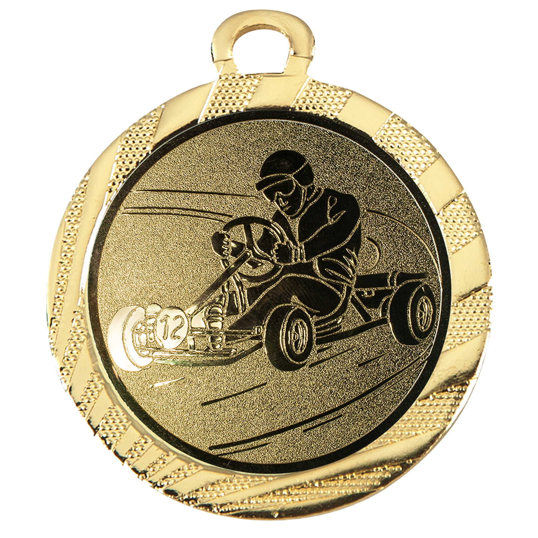 Auf der Rückseite der Medaille kann eine individuelle Beschriftung angebracht werden. Dein Wunschtext – ob Name des Fahrers, Renntermin, Veranstaltungsname oder Platzierung – macht die Kartmedaille zu einem ganz persönlichen Andenken an das Event.