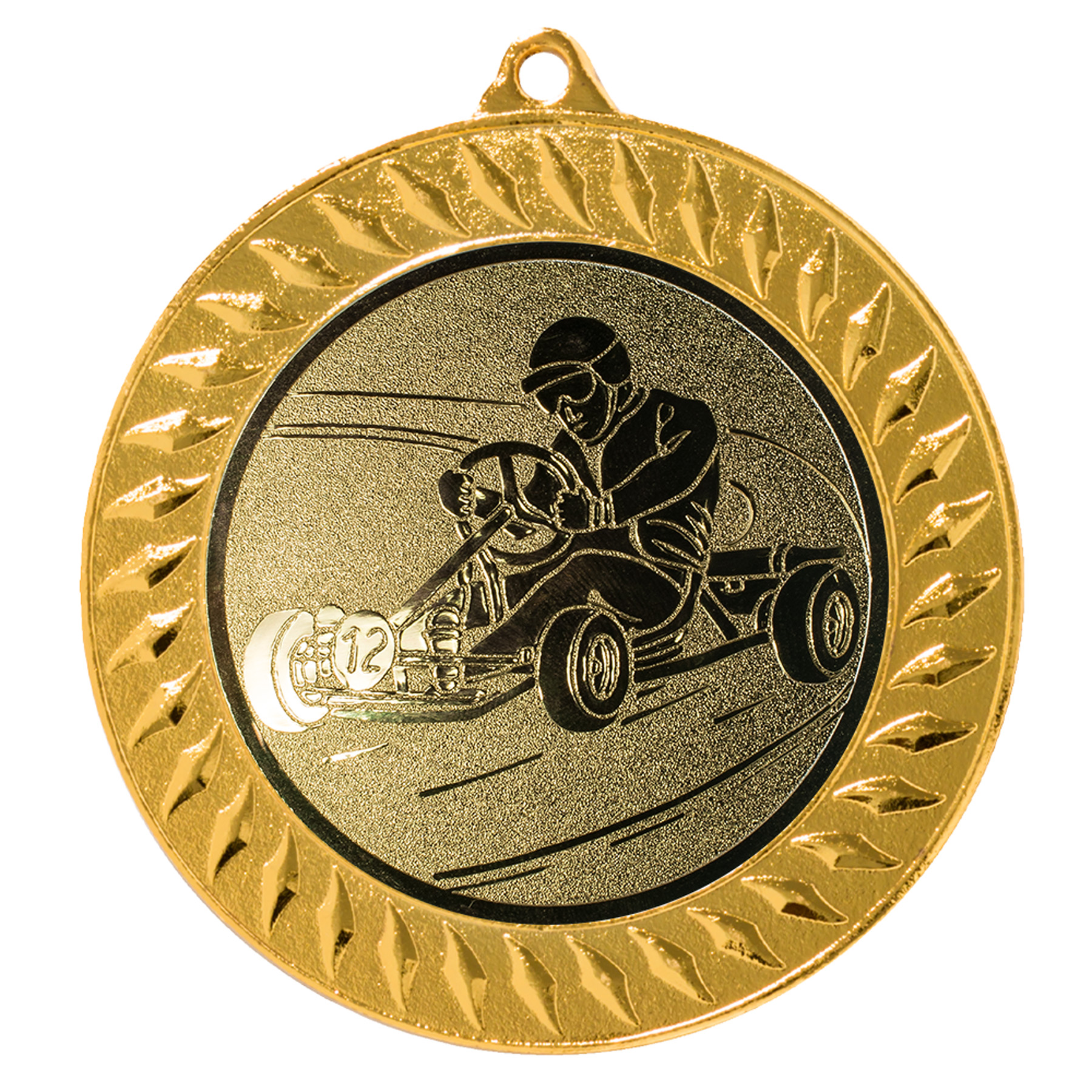 Das kostenlose Emblem (Ø 50 mm) ist bereits montiert und in Gold, Silber oder Bronze verfügbar. Ideal für Platzierungen, Sonderpreise oder Teilnehmerauszeichnungen – perfekt für professionelle und Amateur-Kartrennen.