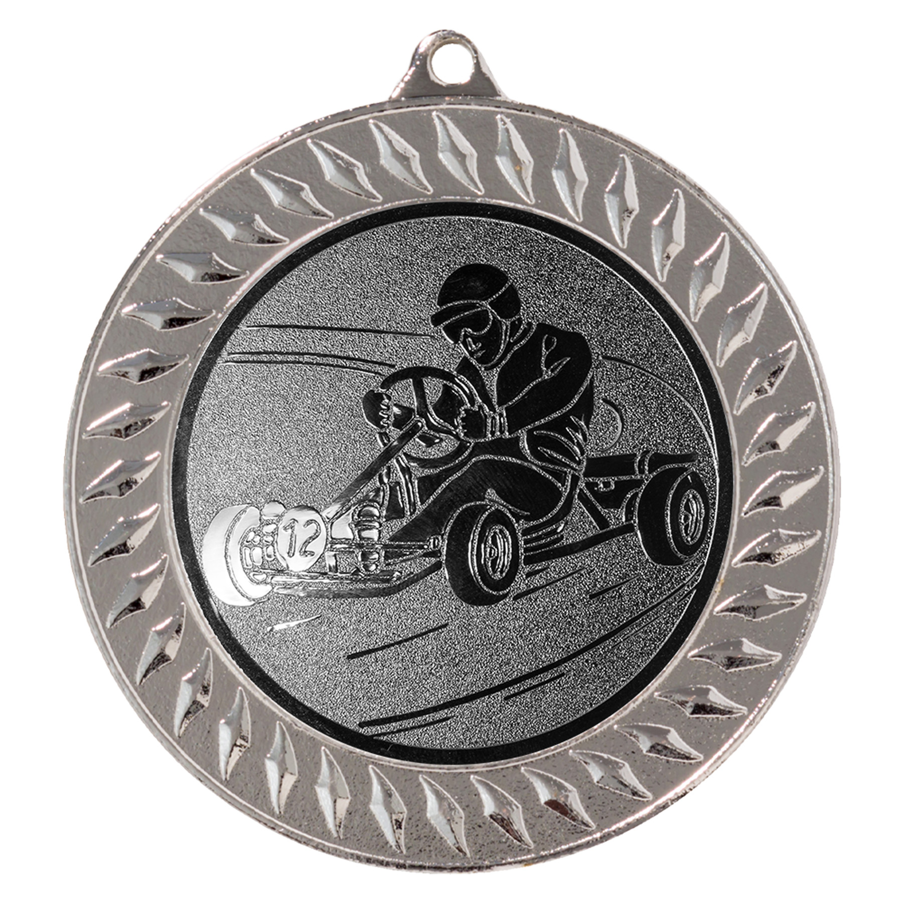 Auf der Rückseite kann eine individuelle Beschriftung angebracht werden. Dein Wunschtext – wie Name des Fahrers, Renndatum, Veranstaltungsname oder Platzierung – macht die Kartmedaille zu einem einzigartigen Andenken an besondere Rennmomente.