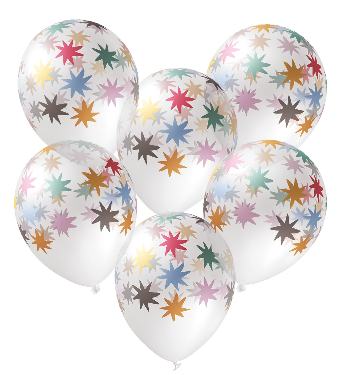 Luftballons - mit farbigen Sternen bedruckt - 6 Stück