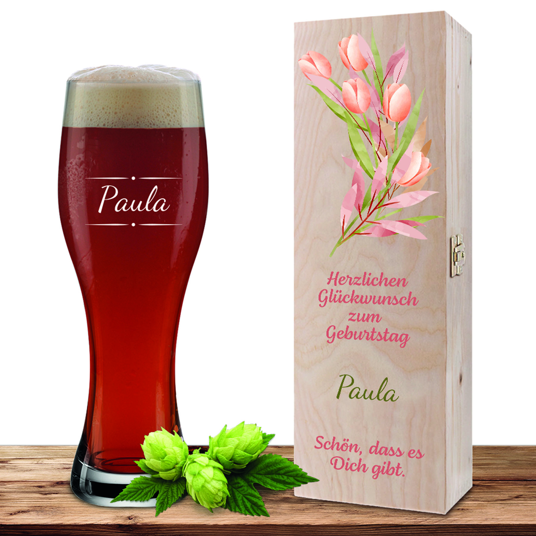Dieses personalisierte Weizenglas mit Holzkiste eignet sich ideal als Geburtstagsgeschenk für Männer und Frauen, die Wert auf Individualität und Qualität legen. Die Kombination aus edlem Glas, emotionaler Botschaft und stabiler Geschenkbox macht das Set zu einem langlebigen Präsent mit besonderer Bedeutung.