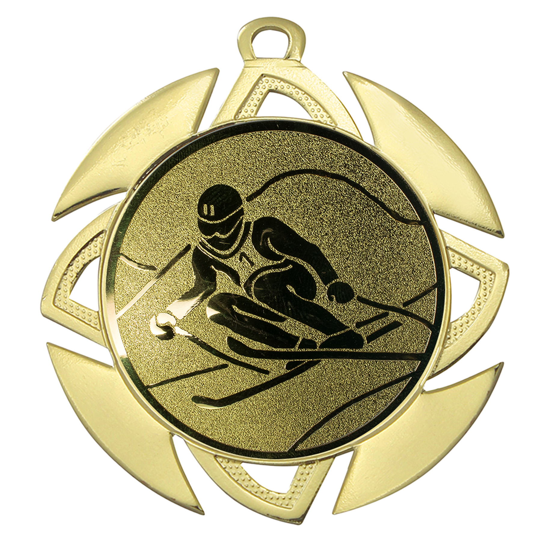 Mit ihrer eleganten Gestaltung und den klassischen Farbvarianten Gold, Silber und Bronze ist die Skimedaille „Allium“ die ideale Auszeichnung für den alpinen Skisport. Das detailreiche Wintersport-Emblem sorgt für einen unverwechselbaren Charakter und macht die Medaille zu einem einzigartigen Erinnerungsstück.